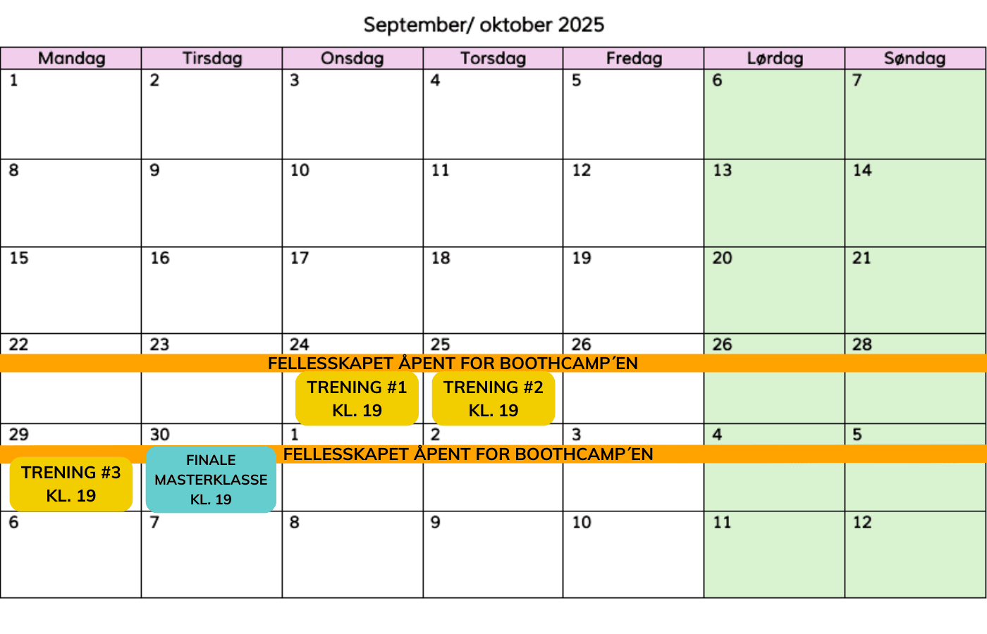 ✅ Tilgang til et fellesskap via en facebook-gruppe hvor du kan stille spørsmål underveis i hele boothcampen (åpner 22.september)